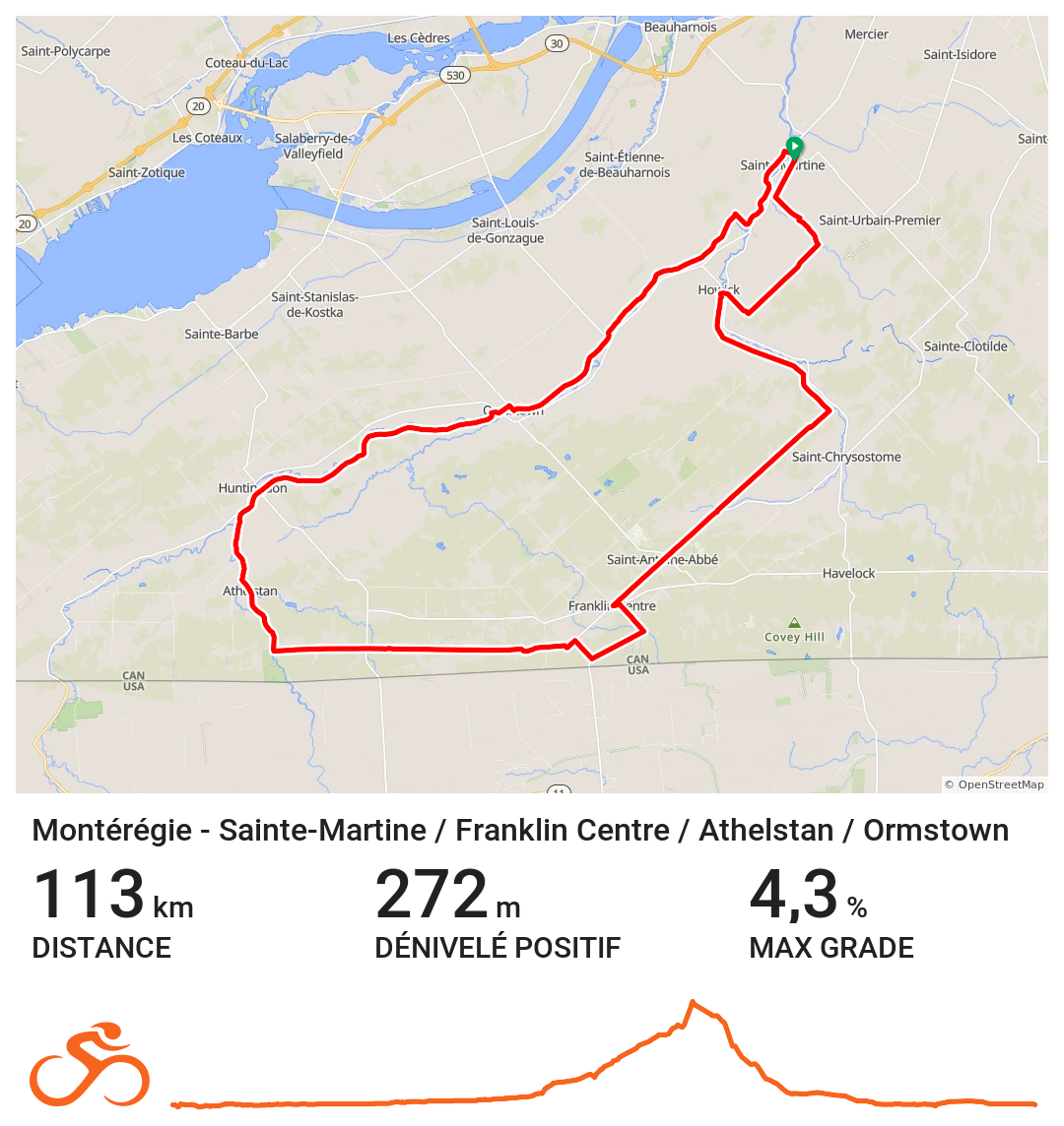 La Montérégie est une région de choix pour le vélo, où chaque sortie devient une invitation à rouler longtemps et librement. Entre le fleuve Saint-Laurent, les rivières sinueuses, les vastes terres agricoles et les collines emblématiques des Montérégiennes (mont Saint-Hilaire, mont Rougemont, mont Saint-Grégoire), le décor se renouvelle sans cesse, offrant des parcours aussi variés que mémorables.