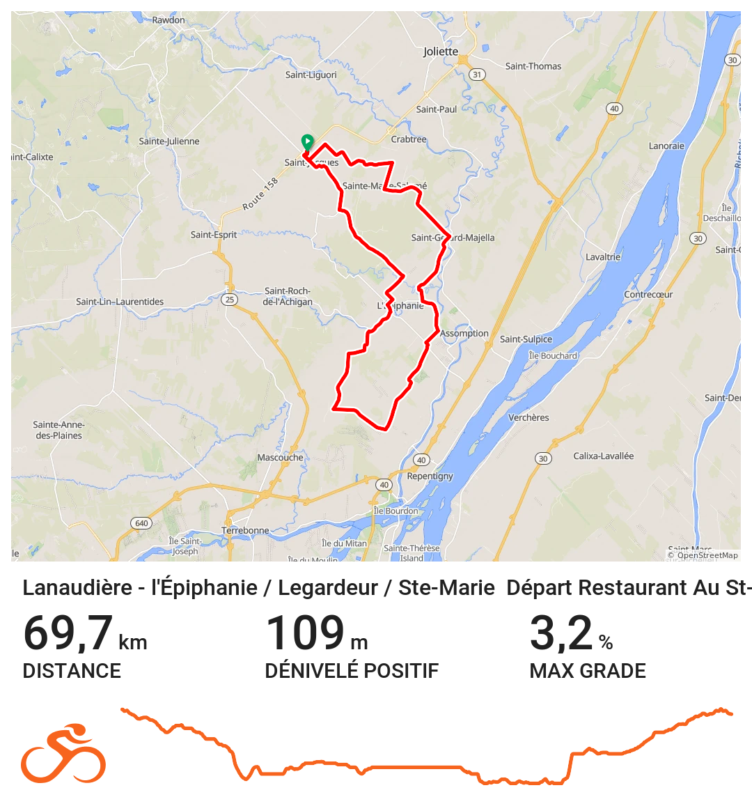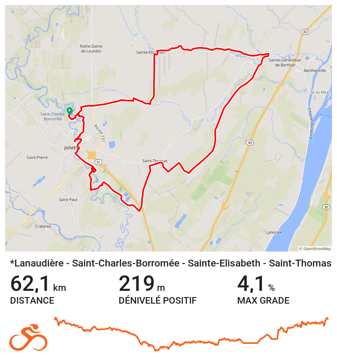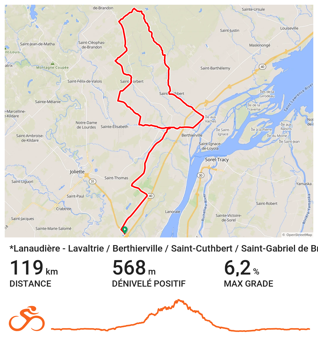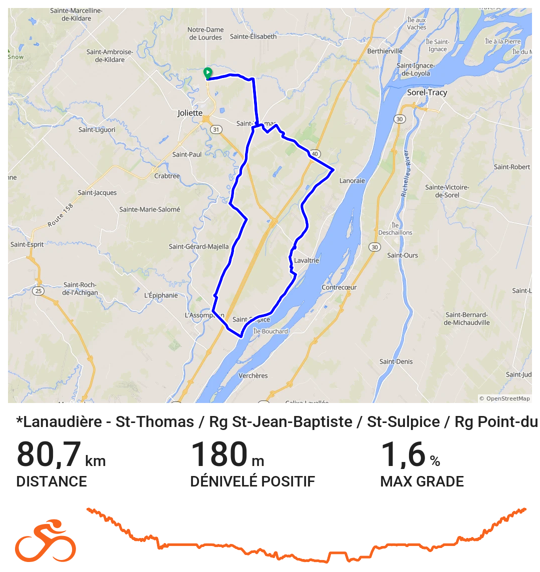 Les routes secondaires tranquilles et les rangs de campagne invitent aux longues sorties, où le plaisir de rouler se mêle à la beauté des paysages ouverts. De L’Assomption à Joliette, des plaines fertiles de la MRC de D’Autray jusqu’aux collines plus vallonnées du nord, chaque parcours révèle une ambiance différente, toujours accessible et inspirante.